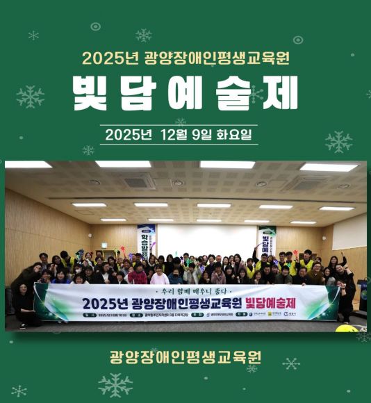 MORE2025년 12월 9일 (화) 학습발표회 ‘빛담예술제’🎉지난 9일 (화) 광양장애인평생교육원의 학습발표회 ‘빛담예술제가’ 막을 열었습니다....